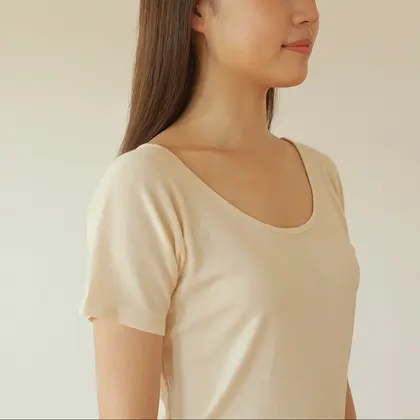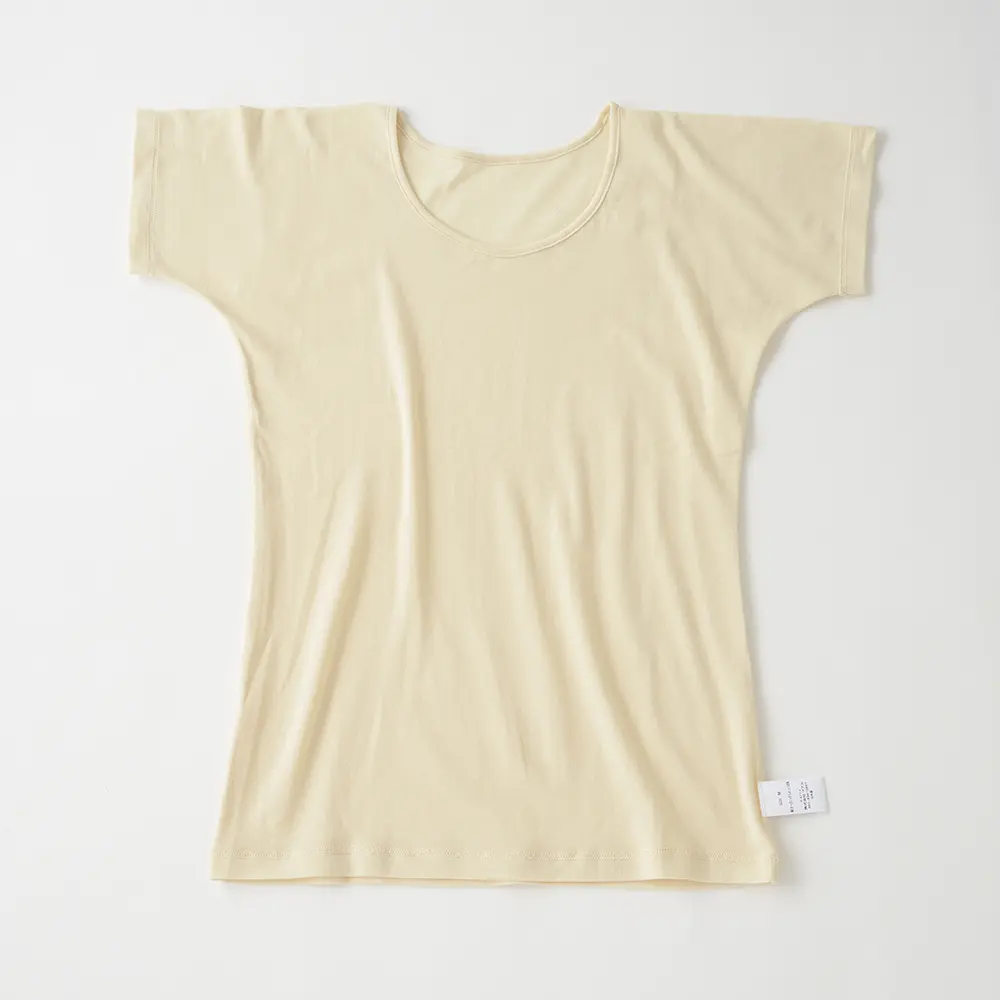 極薄の上質なペルーピマを使い、肌着のパーツを減らす独特な作りで「まるで着ていない」ような軽さが実現しました。