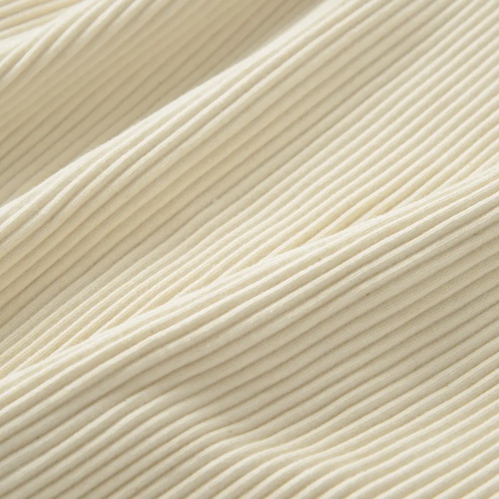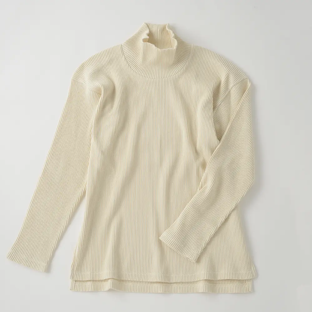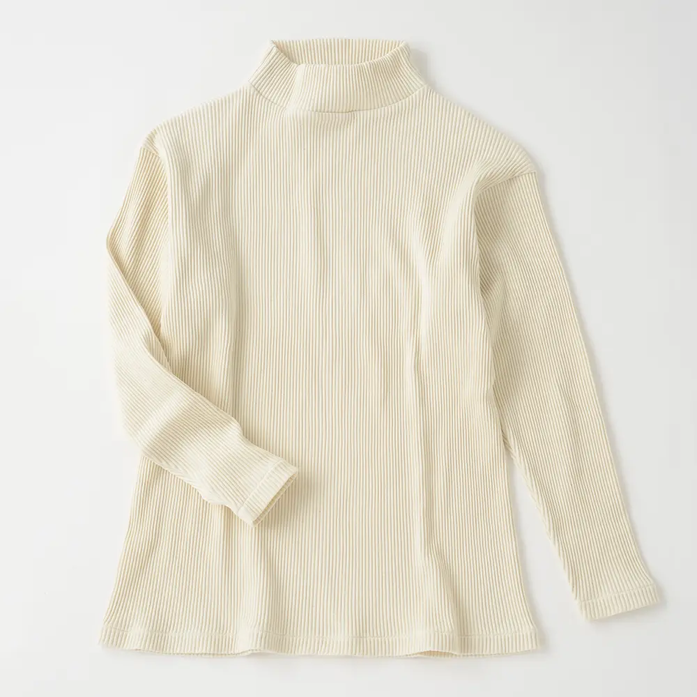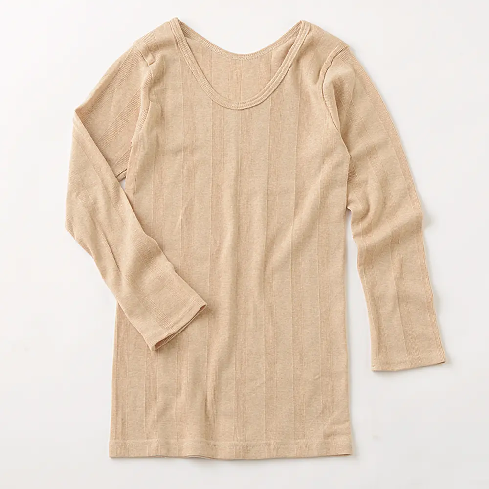 商品説明:輪編みにすることで脇に縫い目が無く、うす手でも暖かい。リブとフライスの編み地で伸縮性があります。縫い糸もオーガニックコットンを使用しています。