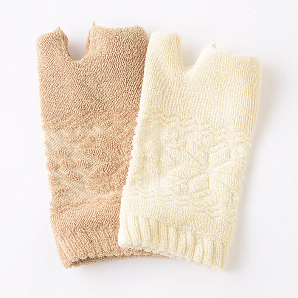 商品説明:編み地がパイルのため地厚で暖かい。ミトン型です。指先が使えるので便利です。