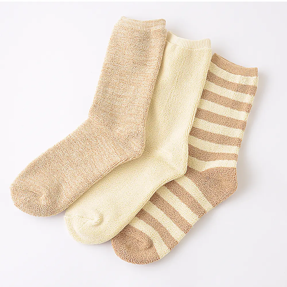 商品説明:履き口ゴムなし編み地がパイルなので厚みがあり暖かい。履き口にゴムが入っていません。裏糸にナイロン・ポリウレタンを使っているので伸縮性があり、適度のフィット感もありずり落ちにくいです。