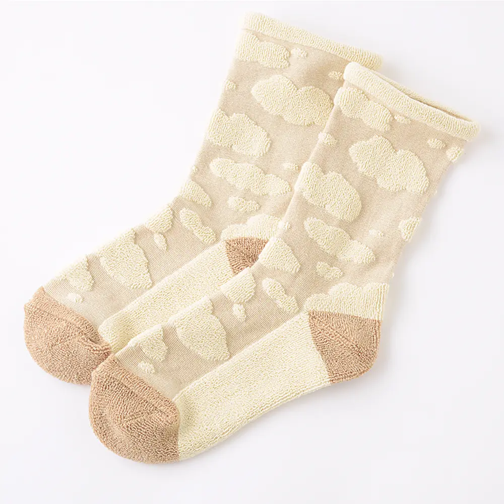 商品説明:履き口ゴムなし雲の形をパイルで表わした、かわいくて暖かいソックスです。