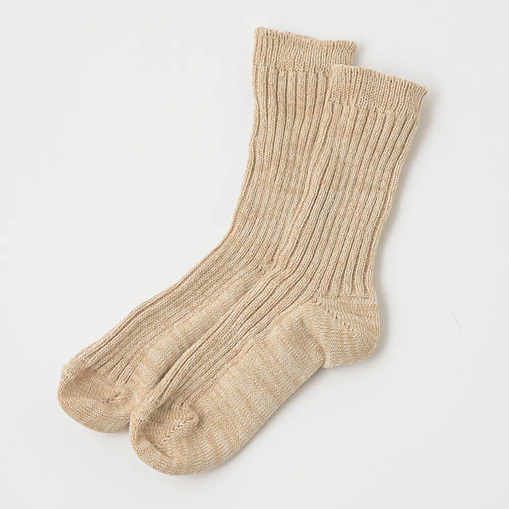 商品説明:ローゲージでざっくりとした柔らかな素材感があり、またリブ編により、締め付けがないのに適度なフィット感があります。生成りと茶を引き揃えて編み杢調を表現し、優しいイメージに仕上げました。