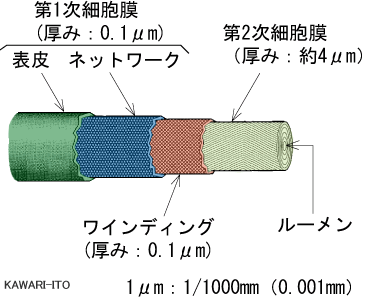 右の図はコットンの繊維の構造を示しています。