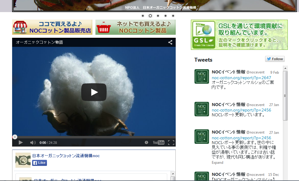 NOCのホームページに「オーガニックコットン物語」というナレーションが、