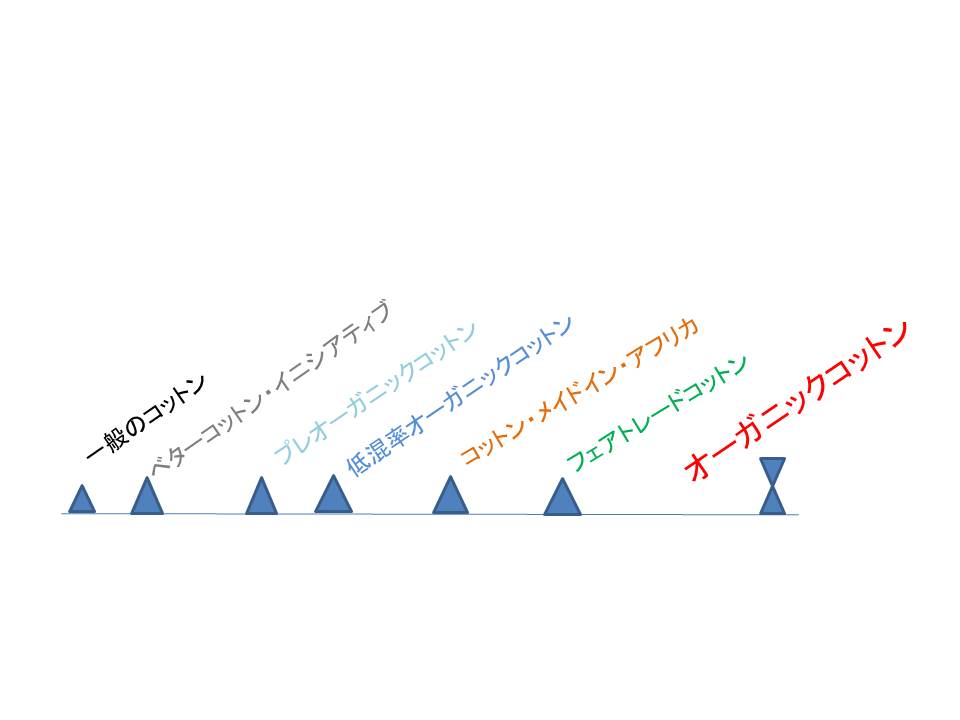 間に「BCIベターコットン・イニシアティブ」、「プレオーガニックコットン」、